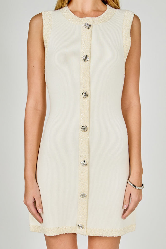 Vestido mini botones piedra